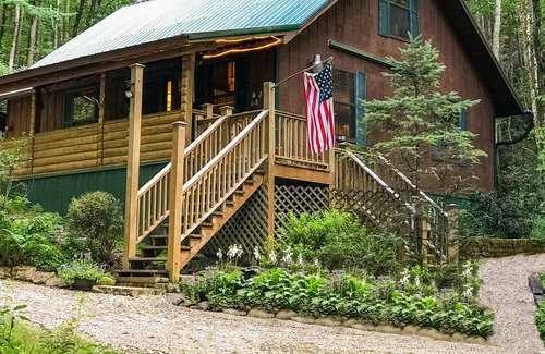 Peaceful creekside Mountain Chalet in the woods, listen to waterfalls, firepit | Cabin in Andrews