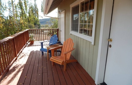 Our newly remodeled spacious 2 story (1100 sq. ft. ) guesthouse is located on quiet lane in 1 1/2 acres, above a beautiful South Sebastopol valley . We have " Warm Floors" heating that keeps the guesthouse cozy & 6" walls that will keep you cozy as well in the Winter & cool in summer. Our area has coastal breezes in the summer evenings. We are in quiet/private rural area but with easy/close access (Hwy 116 & 101 close by) to Sonoma/Marin county and the bay area. And there are many hospitals, wineries, and business opportunities nearby. In our questhouse upstairs, there are 2 partitioned bedrooms (walls with no doors, see pictures) with 2 twin beds in one room & a queen bed in other. Downstairs there is a large family room with a futon couch to make into 3rd double bed (with a new spring mattress), another couch, kitchen, and a spacious bathroom (10' X 10', with shower). The kitchen includes a new refrigerator, new large microwave, new oven range, "instant Pot", blender, and 2 new induction glass cooktops as well as many other items (see amenities ). There is a private deck in the back of the guesthouse with views of trees, birds/wildlife, and a view of the valley.