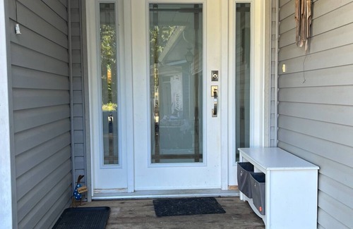 Open concept rancher style home at the top of a small hill with a bay below. Kayak and canoe available. 3 bedrooms, kitchen, a big deck & a hot tub in the privacy of trees. Koi pond with waterfall. Hammocks in the trees.