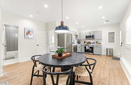 Nestled in the heart of historic downtown Norcross, this beautifully renovated home offers the perfect blend of charm and modern comfort. Featuring 3 bedrooms with smart TVs, 2 stylish bathrooms, and a fully remodeled kitchen with brand-new appliances, it's ideal for a relaxing getaway. Unwind in the inviting living and dining spaces with seating for 6, or relax on the outdoor patio. Explore the vibrant local area, then retreat to this serene, well-appointed home for a peaceful stay.