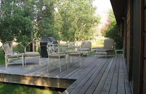 This one-acre property is peaceful and private with superb views. It is perfect for guests who enjoy the Sun Valley area and want a retreat. We often see wildlife including elk and deer, and there are many types of birds. This 2 bedroom house is open and light, and has awesome views of the surrounding hills. We enjoy the scenery from the 3 decks in the summer or through the many windows with views during the winter. The property is adjacent to Indian Creek and a path that is several miles long.