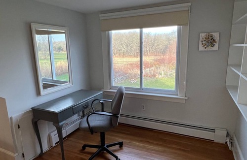 This cozy getaway awaits in Little Compton offers a serene escape for up to 8 guests. Enjoy a peaceful view of open fields and forest while relaxing in bed or on the deck, from a glorious sunrise to a magical afternoon as deer emerge to graze. In the evening, gather round the fire pit or by the fireplace, with a meal from one of the local restaurants or cooked in the gourmet kitchen. Close to the town beaches and Four Corners, with restaurants, boutiques, galleries and world-famous ice cream. A short walk to Sakonnet Vineyard, with its award-winning wine, serving lunch and dinner year-round. Unwind and enjoy everything our warm, welcoming house and historic Little Compton have to offer.