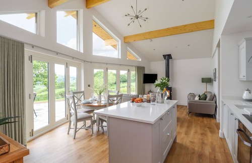 The open-plan living area in this single-storey, detached lodge include a kitchen with electric oven and hob, microwave, fridge/freezer and dishwasher, a dining are for four guests, and a sitting area with a Smart TV and woodburning stove. There is a separate utility with a washer/dryer. The bedrooms consist of a king-size with en-suite bathroom, and a twin zip/link, along with a shower room. Outside, there is an enclosed garden with hot tub and barbecue, and off-road parking for three cars. Within 3.3 miles, there is a shop, and within 0.9, a pub. Sorry, pets and smoking are not permitted. WiFi, fuel, power, bed linen and towels are all included in the price. There is an enclosed cattle field next to the property. Whether it's your next family break or romantic getaway, explore North Wales with a stay at Pen Bryn. Please note: This property only accepts check-ins on a Friday & Monday.