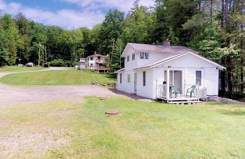 A charming just remodeled 3 bedroom 2.5 bath house with a full eat-in kitchen, with modern appliances, kitchen table & chairs with direct view of the dock & lake, wide open to the living room with a comfortable sleeper couch, 55 in curved TV with plenty of channels to choose & a pellet stove to keep you warm & cozy. 2 large bedrooms & a bathroom with a shower & hair dryer. The master bedroom on the 2nd floor has its own private bath with shower, a 50in TV & windows all around. High speed internet service will keep you connected & lots of hot air balloons to look at. Just for fun, see if you can find some old love notes on the wood walls & yes you can jog around the lake, its only 5 miles.