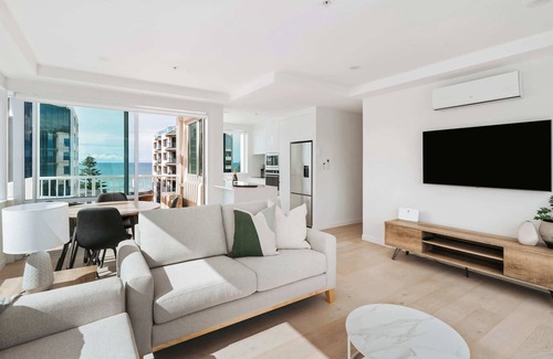 Luxury penthouse with sweeping ocean, harbour and mountain views. Enjoy unlimited WiFi, smart TV, two plush bedrooms, modern bathrooms, fully equipped kitchen and coffee machine. Relax with heated pool, gym and two secure carparks. Watch sunsets as cruise ships pass and sunrises from the ocean side. Beaches, dining and shopping are steps away