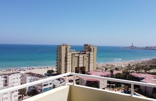 Penthouse on the 11th floor with a large terrace and exceptional views of the Mediterranean. Ideal to enjoy any season of the year, 150 meters from the sea, at the beginning of La Manga del Mar Menor. Supermarket, pharmacy and bus stop nearby. 1 hour and 17 minutes from Alicante airport. 40 min from Corvera-Murcia airport. 12 min from La Manga Club Hyatt complex. Padel court. Communal swimming pool.