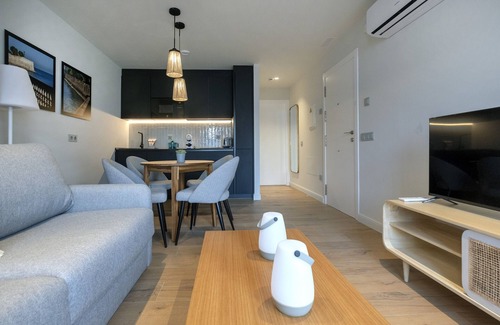 NO PETS NO SMOKING IN THE ENTIRE ACCOMMODATION PROHIBITED PARTIES AND EVENTSIN THE CASE OF MINORS UNDER 25 YEARS OLD, A DEPOSIT WILL BE REQUESTED THE ESTABLISHMENT WILL NOT GUARANTEE THE FLOOR NUMBER UNTIL THE KEYS HAVE BEEN DELIVERED, BUT IT WILL RESPECT THE TYPE OF ACCOMMODATION CHOSENVillar Suites by Cadiz4Rentals is a modern and exclusive newly built building located in the beautiful city of Cádiz. This impressive residential complex consists of six apartments with an elegant and contemporary design, which offer its guests an unbeatable experience.At Villar Suites, the fusion of the architectural tradition of Cádiz with the modern and functional design of the apartments provides a cozy and sophisticated environment for guests. Each suite has been carefully designed to offer comfort and luxury, with contemporary touches that enhance the natural beauty of the oyster stone present in all its common areas and in each of the suites. This stone is a true symbol of identity of the city of Cádiz, and it has been restored and carefully incorporated into the design of the building so that guests can appreciate and enjoy its beauty and authenticity.Villar Suites stands as an invitation to live an unforgettable experience, where the essence of Cádiz is found in every corner.Villar Suites is located in an unbeatable location allowing visitors to enjoy the wonders that this historic city has to offer, with its golden sand beaches, its rich culture and exquisite cuisine.They are located in the historic center of Cádiz, a 10-minute walk from any point of interest in the city: the beautiful Playa de La Caleta, the imposing Plaza de la Catedral, the pleasant Campo del Sur,... are just a few examples of the list of places that you cannot miss during your visit to our city.In addition, in its surroundings you will find all the necessary services for your stay. Supermarkets that open all day, restaurants that offer the most exquisite menus of the incomparable gastronomy of Cádiz, the most special cafeterias,...All the apartments have a kitchenette equipped with everything you need to cook the best dishes and a bedroom with a queen size bed and a bathroom with a shower. In addition, the building has a washing machine on the top floor of the building.Villar Suite ALAMEDA is a penthouse with an outdoor terrace for 4 people that also has a living-dining room equipped with a comfortable sofa bed.Guests must show a valid identity document and sign a tourist rental contract at check-in (in accordance with Decree 28/2016 of the Junta de Andalucía on Housing for Tourist Purposes). In these accommodations, COMPLEMENTARY SERVICES typical of the hotel industry are OFFERED: cleaning during the stay, periodic change of bedding, personalized attention during the stay, reception and permanent attention, custody of luggage, help in hiring reservations for tourist experiences. ..If you have any questions contact us:Cadiz4Rentals