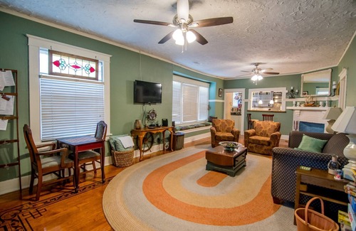 This charming bungalow is located in the part of downtown affectionately called Blissville. It is close to the busy downtown area but far enough to be quite and restful. Take a close exit and you can be anywhere in Little Rock in 10 minutes. Lots of natural light through the house and a lush tropical back yard provide an unique experience. House is within a walking distance to the State Capitol and a park with a large playground. House is perfect for extended stays and has everything you need.