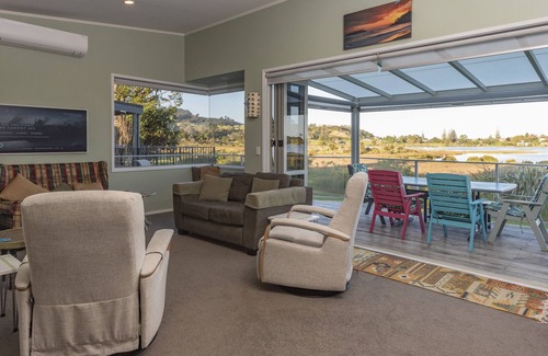 The estuary in front of the bach is a shallow tidal haven great for kids to play and kayak, where they can be watched from the deck. The more energetic can take a relaxing kayak up the Pepe stream. For the keen golfer, there is an eighteen hole golf course just minutes away. This is accessible with a short walk over the river behind us, or by Vehicle on the road.