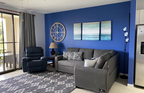 Relax and enjoy this lovely condo one bedroom condo location on the third floor overlooking one of the large and spacious pools in the lovely manicured and sought after Pacifico gated community. This condo is centrally located to the main town, the beach, the pools and more. It sleeps 2 with a comfortable king bed. The patio is the size of the entire condo so you have a lovely spacious indoor space along with an outdoor eating area and lounge. Four shared pools and hot tub!