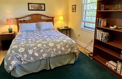 With stunning views and minutes from Hanover, NH , Dartmouth College, King Arthur Flour, and White River Junction, this comfortable and quiet cottage is nestled in the hills of Vermont. This home is perfect for leaf-watching, cross-country skiing, and hiking with easy access to a full range of outdoor activities. This two bed-room home on our 16 acre property includes a den that has a pull-out couch, a fully stocked kitchen, wood pellet stove, and newly finished floors—you'll feel right at home.
