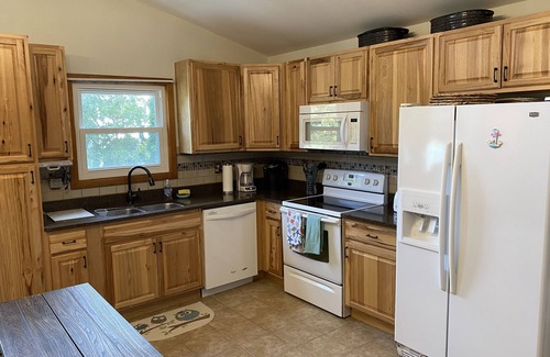 Kitchen comes fully stocked with cooking supplies, pots, pans, dishes- Keurig, coffee pot, toaster, blender, etc.. home away from home! We are providing linens this year so Guests are asked to start a load or 2 before leaving in the morning before checking out.