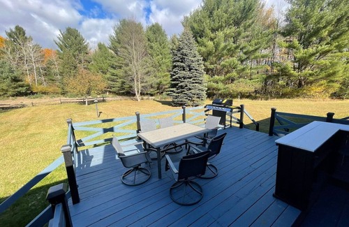 Venture north and experience a fabulous family getaway at this vacation rental in Peshtigo, Wisconsin! The house is situated on a lovely 13-acre lot, 5 minutes from Peshtigo River (lots of fishing). There is a fire pit and closed garage to store all your toys.