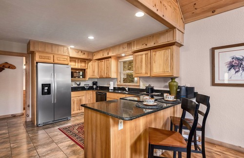 Gourmet Kitchen: Granite countertops, dishwasher, refrigerator with ice maker and water dispenser, Keurig, drip coffee maker (featuring veteran-owned Black Rifle Coffee), toaster, blender, crockpot, and all essentials for home-cooked meals.