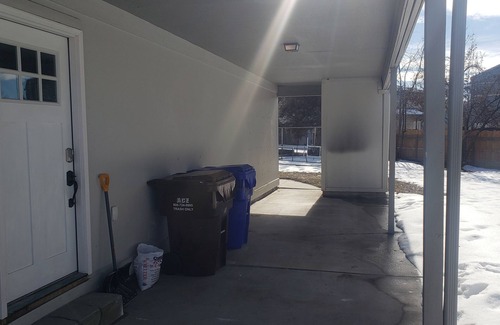 The Outside - while you do have full access to the yard, it is currently a bit lack-luster. The fence surrounds most of the space, but does not fully enclose it, so pets should not be left unsupervised. Check back in the future for updates here. In the front, there is plenty of parking for everyone.