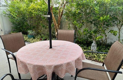 Located conveniently to the Causeway and within 2 miles of the beach, this 3 bedroom townhome is sure to exceed your expectations. The entry leads into a spacious kitchen, living and dining area with table seating for 4 and additional seating at the bar. The kitchen is well stocked with all the necessary essentials and then some. The 50 inch TV in the living room has Live Sreaming for you viewing enjoyment. The half bath is on this level as well. The sliding glass doors lead to a cozy fenced in patio with table and chairs for 4. Perfect for enjoying moring coffee or evening cocktails.