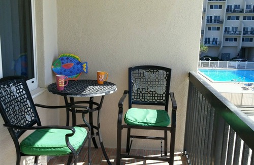 This is a 2 BR Condo that sleeps 6 people. Everything is on one level. This is the choice 2Br Unit, bought from the Developer, on the 3rd Floor and from the patio - - view the main pool, approximately 1 mile of beach and you can throw a rock in the ocean from this same patio. Elevator provided. Pinnacle Port shares this gated Community with Carillon Beach. You're on the World's most Beautiful Beach.