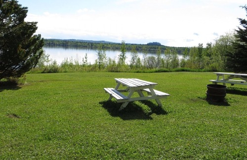 It's Just Viewtiful! Piper's Glen Resort is a campground located on Hwy 16 (Yellowhead), 140 km west of Prince George, between the villages of Fraser Lake and Fort Fraser. It's a convenient stop on your way to Prince Rupert to catch the ferry to Alaska, Haida Gwaii, Vancouver Island; or Hwy 37 to the Yukon. We overlook the Lake with a lovely lake view, fire pit and picnic table out front. The cabin has a kitchenette, two double beds, futon, and flush toilet, and shower is in the central showerhouse. Due to Covid 19, bring your own bedding, sleeping bag, pillows, and towels, dishes, pots and pans. Down at the lake we have a small boat launch & dock, fishing is good with rainbow trout & char. Fraser Mountain hiking trail is 1 km. Beaumont Provincial Park is 3 km for sandy beach and swimming area.