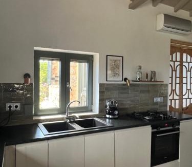 Food & DrinkTea/Coffee maker, Wine/Champagne, Bottle of waterBathroomToilet paper, Hairdryer, Towels, Private bathroom, Shampoo, Body soap, Towels/Sheets (extra fee), ShowerMedia & TechnologyFlat-screen TV, TV, Streaming service (like Netflix), TelephoneGeneralHeating, Key access, Soundproof, Mosquito net, Air conditioning, Fan, Ironing facilities, Electric blankets, Iron, Private entrance, Tile/Marble floor, Interconnecting room(s) available, Trash cansKitchenRefrigerator, Kitchenware, Coffee machine, Kitchen, Stovetop, Wine glasses, Washing machine, Dining table, Oven, Toaster, Electric kettle, Kitchenette, Cleaning productsOutdoorsOutdoor dining area, Terrace, Outdoor furniture, Balcony, Barbecue, PatioLiving AreaSofa, Desk, Sitting area, Fireplace, Dining areaViewGarden view, Mountain view, Sea view, Inner courtyard view, City view, ViewBedroomLinens, Wardrobe or closetAccessibilityEntire unit located on ground floorBuilding CharacteristicsDetachedRoom AmenitiesAdapter, Sofa bed, Feather pillow, Drying rack for clothing, Socket near the bed, Hypoallergenic pillow, Clothes rack, Non-feather pillowEntertainment & Family ServicesBoard games/puzzles, Books, DVDs or music for childrenPhysical distancingSingle-room AC for guest accommodation |
