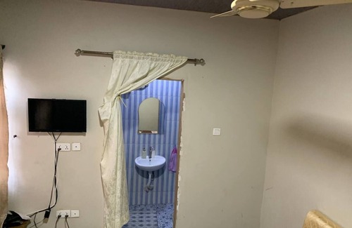 2 bedroom apartment, one bedroom is airconditioned and has Dstv subscription, plus a living room (air condition) , study area, dining area, balcony, kitchen with utensils, a cooker, rice cooker, blender etc, large parking space