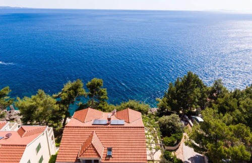 Dingač - Borak 5 km from Trstenik: Beautiful apartment house "Plavac Mali". Outside the resort, 4 km from the centre of Potomje, in a quiet, sunny position on a slope, 30 m from the sea, 30 m from the beach, in a cul-de-sac, in the countryside, south facing position. For shared use: outdoor shower, barbecue. In the house: internet access. Parking at the house on the premises. Shop 4 km, restaurant 30 m, bus stop 4.2 km, pebble beach 130 m, rocky beach 30 m. The restaurant 30m from the house opened from 20.06. - 01.09. Further restaurant in Trstenik, 5km from the house. In Borak renting of diving equipement and boat diving excursions. In Žuljana diving school, 24 km from Borak.