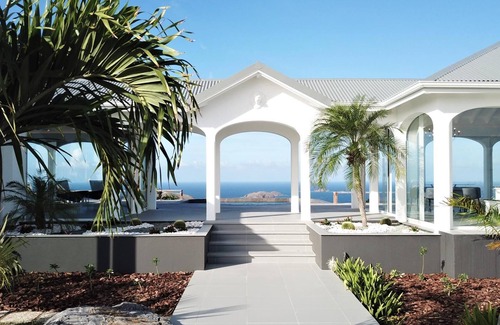Byzance is located on the heights of Colombier. The situation of the villa is exceptional: at the top of the cliff, it overlooks the ocean and Flamands bay. For guests who are looking for calm and privacy, this will be your villa. The two bedrooms are situated on each side of the living in separate bungalows. A unique property!