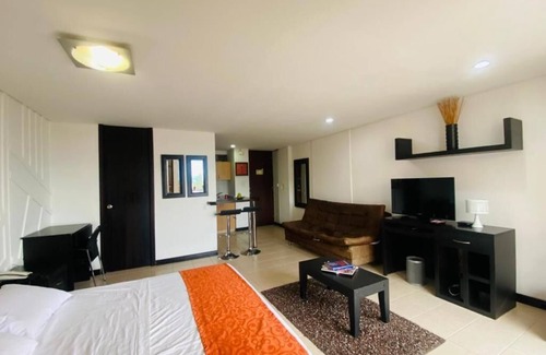Nestled in Medellín, this 1-bedroom, 1-bathroom apartment brings it all within your reach. Fans of nature and the outdoors will love being 6 minutes by foot from Poblado Park and 12 minutes from Lleras Park. Your feet will make short work of the 3-minute walk to The Dancer's Park or the 13-minute walk to Oviedo Shopping Center. Check out other neighborhoods and see more of Medellín by hopping on a metro at Poblado Station, just a short 13-minute walk away.