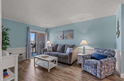 A Place At The Beach Cherry Grove 3F is a two-bedroom, two full bath third floor condo (no elevator) located in the Cherry Grove section of North Myrtle Beach. The location alone is perfect for families, couples or friends, who are looking for a quiet and relaxing place to stay. The area is quiet and family-friendly, not to mention close to the best of North Myrtle Beach. The beach is right across the street. The condo is welcoming with calming colors and modern décor.The living area has plenty of room for gathering, with sliding glass doors that open up to the private balcony. The kitchen is also spacious and a part of an open floor plan that includes the living area. Feel like a master chef while preparing meals in this kitchen with quartz counters, tile flooring, and stainless appliances. Make a cocktail to enjoy on your private balcony. Imagine sipping on a cool beverage while the ocean breeze tickles your skin. An onsite grill means more dinner options. Grill up hamburgers for a family cookout or the catch of the day. Other amenities to make your stay comfortable include an on-site washer and dryer, flatscreen TVs, and WIFI.If swimming in the ocean is not for you, then enjoy the onsite outdoor pool at A Place At The Beach Cherry Grove 3F. There is more fun to be had outside the condo. Walk across the street and sink your toes in the golden sand of the Grand Strand. Set up an umbrella and listen to the sounds of the waves crashing and seagulls flying. You may see boats passing by on the horizon or spot a porpoise swimming in the surf. The beach is not the only place to have fun! Visit the Main Street area of North Myrtle Beach. There are arcades and nightclubs. Close by is several restaurants and shops, including the Tanger Outlets and Barefoot Landing. There is something for everyone in North Myrtle Beach. Rent A Place At The Beach Cherry Grove 3F today for a fabulous beach vacation you will never forget!