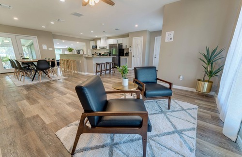 • Walk into a large open floorplan kitchen and dining room that has plenty of space for your entire group.