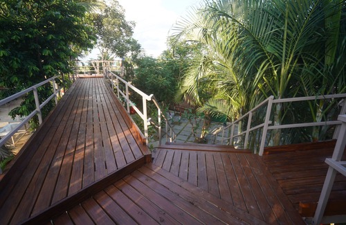 This beautiful property is sure to wow any guest. It boasts a huge swimming pool which could fit up to 30 people easily, and an open-air vibe lawn with plenty of ventilation and wind. The internal construction of the bridge offers a unique experience, surrounded by six patios of lush greenery. To top it off, a musical system is provided to all guests as part of their stay!.