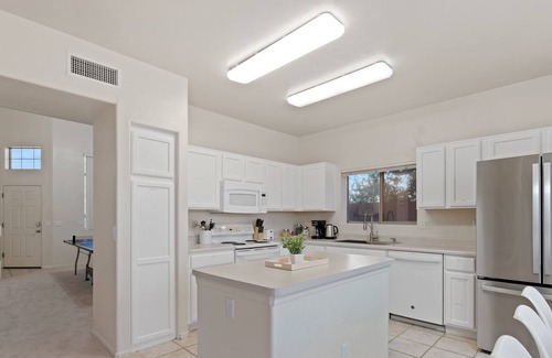 Central to many things that Tucson, Marana, and Oro Valley have to offer, this 2,245 sq.ft home features 5b3b with a sparkling pool (non-heated, fully fenced) and breathtaking mountain views. It features: (1) a large ping-pong table (table tennis) for quality family time and fun! (2) two large smart TVs with free Roku contents, (3) kids corner with a tent and jumpy animals, (4) three offices with fast WIFI, and (5) HUGE yard. All guests who want to stay with us please note: NO PARTIES OR EVENTS. QUIET HOURS 8AM-8PM