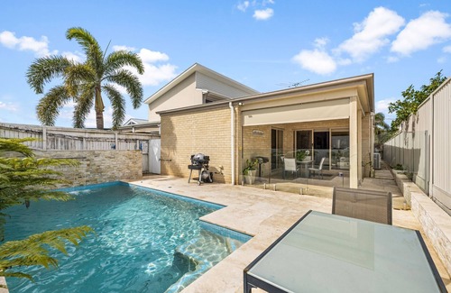 This oasis of a house is the perfect family getaway offering a bedding configuration for 8 (4 bedrooms), 2 bathrooms, 2 living rooms and a beautiful outdoor BBQ area with pool. The location is brilliant - short walk to stunning Queens Beach and Scarborough Village. Fully equipped & with air-con in the living room and a car space off the street, you will love this convenient location close to everything Scarborough has to offer.
