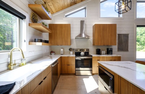 1-2 Bedroom cabins will be supplied with: 2 Laundry pods, 2 Dishwasher pods, 1 Hand Soap, 2 rolls toilet paper per bathroom (1 on holder and 1 under sink/drawer) , 1 Paper Towel (under kitchen sink), 4 Trash bags (under kitchen sink), 1 Travel Sized Shampoo per bathroom, 1 Bar Soap per bathroom.