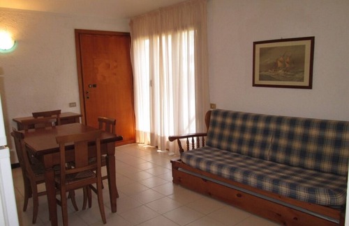 Inside there is a living room with equipped kitchenette and sofa bed with a single place, 1 double bedroom, 1 bedroom with two single beds that can be joined together, bathroom with tub. total beds 5.