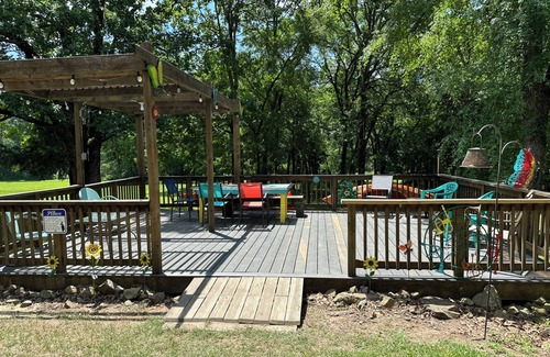 Enjoy the privacy of the country without leaving the convenience of town. No through traffic and plenty of room to stretch out during your stay. Enjoy walks along paved road and beautiful views of neighboring horse farms. Fish the creek or enjoy a leisurely kayak trip downstream and back. A FISHING LICENSE IS REQUIRED TO FISH ON THE CREEK! We also have another property listed as Prairie Creek Cabin ‘A’ (Property 9423969) if this property is not available for your stay.