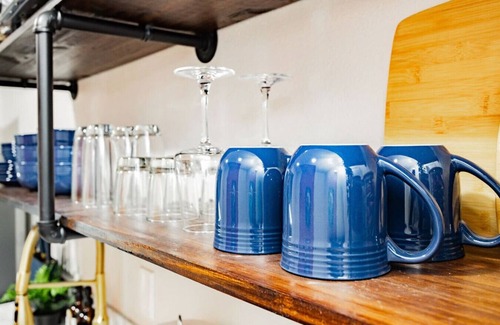 Step into your home away from home, where you can indulge in culinary delights! Our kitchenette is fully equipped with essential modern amenities, including a refrigerator, a complete set of utensils, and a variety of spices and pantry items to enhance your cooking. We offer a rice cooker, a Crock-Pot, a blender, and a hot water kettle. The coffee station is well-stocked with a Keurig and K-Cups, as well as a drip coffee maker with creamer, sugar, coffee grounds, and pods. Enjoy the little bar setup with tumblers, shot glasses, and wine glasses for your stay. Though we don`t have a standard stove or oven, you won`t feel lacking with the Electric 2-Burner Stove Top and Griddle, or the Air Fryer, Toaster, and Oven combo unit! Whether whipping up a sophisticated dinner or a quick snack, our kitchen ensures a seamless and enjoyable stay. Experience the comfort of cooking in your exclusive space.