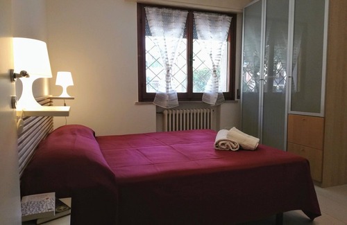 Bright and quiet three-room apartment of 70 square meters with 4/6 beds, cots for children on request for weekly stays on the ground floor of a villa with garden and games for children. The apartment is 8/10 minutes walk from the sea and is located in an elegant district of Rimini Miramare in the immediate vicinity of Rimini Terme.