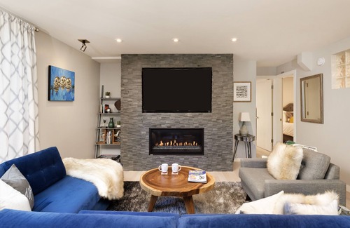 Gas fireplace creates cozy ambiance in the winter months and the unit has its own stacking washer dryer. Fully stocked kitchen with an oversize fridge, ice maker and filtered water dispenser. You also have a private entrance that is away from the other units in the complex and KEYLESS ENTRY!! So check in is super easy and all contact-less.