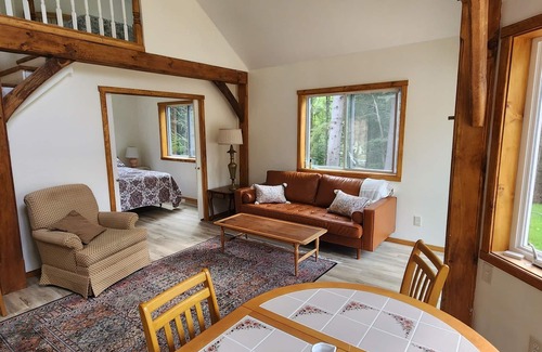 30 min from Brattelboro our Magial Rtreat Cottage was built and designed by Vermont craftsmen to reconnect with nature. Loaded with all the modern amenities, perfect for couples or families seeking to be recharged by nature. Timber frame & glass architecture showcases the beauty of the forested hills and fields of the Green Mountains. Outside and even insdie, you'll hear the waterfalls just 100' away and on warm days you can relax letting your cares float away. This is a place to explore and absorb nature's beauty and peace with friends or family. Also perfect for an extended working vacation via our high speed WiFi. Crossing a beautiful private bridge over the rushing waterfalls that carved its way through the rock ledge for tens of thousands of years, you turn into your own private road – This is your retreat cottage as long as you like!