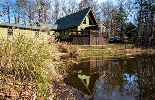 This waterfront home brings the "wow" factor for us. We hope you will feel the same. We have a boat for the pond, a 3 burner BBQ grill, wood fireplace through a handmade stone chimney, screened-in deck, basketball hoop, game room, and so much more.