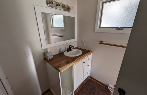 Whoop-ti-do: Nestled in the middle, this cottage features two bedrooms upstairs, each with kings and bunks, a full kitchen, living space, and one bathroom. Sleeps 8. The main floor of this house just went through a full remodel!