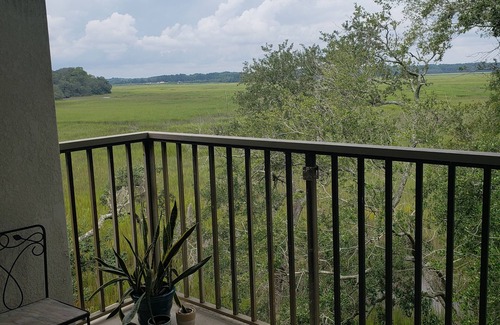 Top floor Condo overlooking a peaceful and natural marsh. Such beauty and privacy for in town living. Minutes and Easy Access to Everything Beaufort! Great Parking, Elevator. Enjoy the Low Country!!