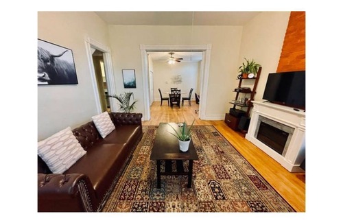 Peak into the history of Glens Falls in this updated 1 BR executive apartment that is a perfect blend of historic charm and modern convenience. The living area is appointed with brand new furniture, electric fireplace, 43" Roku HDTV, & fast wifi. Enjoy cooking in your own fully stocked kitchen. Bathroom has a convenient shower/tub combo. Off-street parking in rear lot. Your door is just steps from dining, shops, and the Cooling Insurance Arena. Lake George and Saratoga are a 15 min drive.
