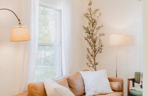 Bedroom 1 is the primary suite with a king bed and attached bathroom with a tub and shower. Bedroom 2 has a comfortable king bed and gets beautiful natural light. Bedroom 3 is a bit smaller and includes a queen bed with a guest bathroom in the hallway. The guest bathroom is a bit of a tight squeeze but still has victorian charm! Both bathrooms are stocked with organic shower and bath products.