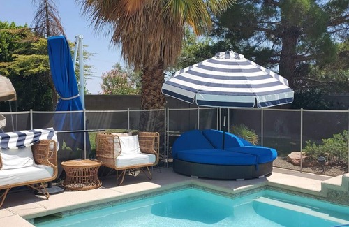This space is a cozy APARTMENT well appointed inside, with a beautiful oasis outside. This rental includes the apartment, AS WELL AS the private pool and Gazebo! The Centennial Hills neighborhood is minutes from hiking, parks, shopping, dining, PAIUTE GOLFING, Valley of Fire, Tulie Springs, Gilcrease farms, and nightlife. Enjoy a day swim in the pool & an evening of drinks and fun in the Gazebo. Prices quoted are for 2 guests. EXTRA GUEST FEE IS $100.OO PER NITE PER GUEST. If bringing a dog you must indicate this when you book. There is a $75 dog fee per dog. Small portable washer/dry in apartment. Laundry pick up (service and fold) available for additional fee.