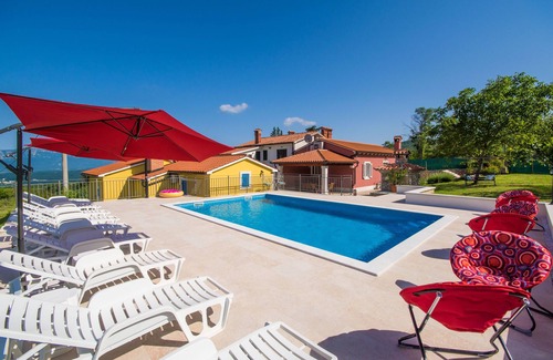 Below the hill town of Pićan, just 15 kilometers from the beach, you will find this beautiful pool villa and its 1 hectare garden.