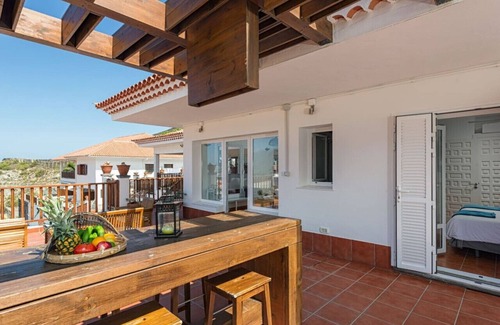 Nested on a hillside between the base of the volcano and the ocean your apartment and terrace offers one of the most stunning view of the whole island: the green north coast with its spectacular sunsets and the massive volcano Teide, to the other side.