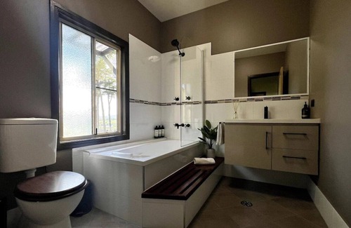 Swap worries and woes for solitude and serenity. You will have the entire 126 acres to yourself to immerse yourself in nature. Meander around the 5km of mown walking tracks around the property and down to the river or stay around the house to enjoy the views from the deck, the fire pit or the outdoor bath. Have the best of both worlds with complete seclusion in the countryside with epic views, but still with all the amenities you need (including high speed internet)