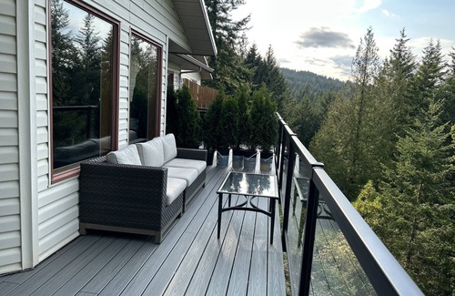 Two rooms and and one suite accommodate 11 people,4 queen size beds and one sofa-bed, one love seat pull out in the Mount Maxwell room 3 people, in the Arbutus room 2 people in the Sky Suite 6 people. In the Sky Suite two queen size beds and sofa bed. All have private entrance and long deck divided by trees. . Good for family and friends. Sunrise, sunset, stars. Sharing hot tub .You will be surround by forest and fresh air.