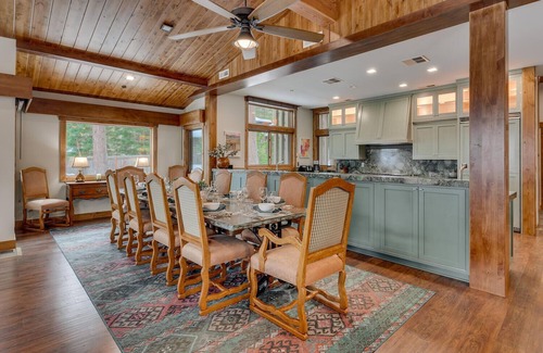 Tahoe Luxury Properties welcomes you to Rubicon Shores Lakefront, the quintessential family home for an idyllic Lake Tahoe vacation. Perched above a sandy white beach framing crystal clear, turquoise waters, the setting is second is simply spectacular. Few locations in the Tahoe basin can boast the unique beauty Rubicon Bay offers. Surrounded by pine trees with snow capped mountain vistas and a panorama of blue that stretches as far as the eye can see, this vacation rental home offers a unique opportunity to experience the the crown jewel of California. Outfitted with six bedrooms, this spacious property can easily accomodate the extended family. The great room, with an open floor plan, is ideal for congregating with loved ones with a cozy gas fireplace, 55" TV, wet bar with counter seating, large dining table with comfortable seating for 12, kitchen that is a chef's dream and of course stunning lake views. The family room is the spot for entertainment with a pool table, second fireplace, piano and TV. All the bedrooms are outfitted with luxurious linens and down comforters and provide the entire family sufficient space to enjoy some true relaxation. For those who may need a little more quiet time, the detached bedroom above the garage offers a mini kitchen area, king bed with 2 twins in an adjoining area and full bathroom. Outside, the deck is outfitted in the summer with lovely patio furnishings and a fire pit to bring the conversation into open air and the "meadow" area is the perfect place to have the kids run, toss the ball or simply lounge in the sun.
